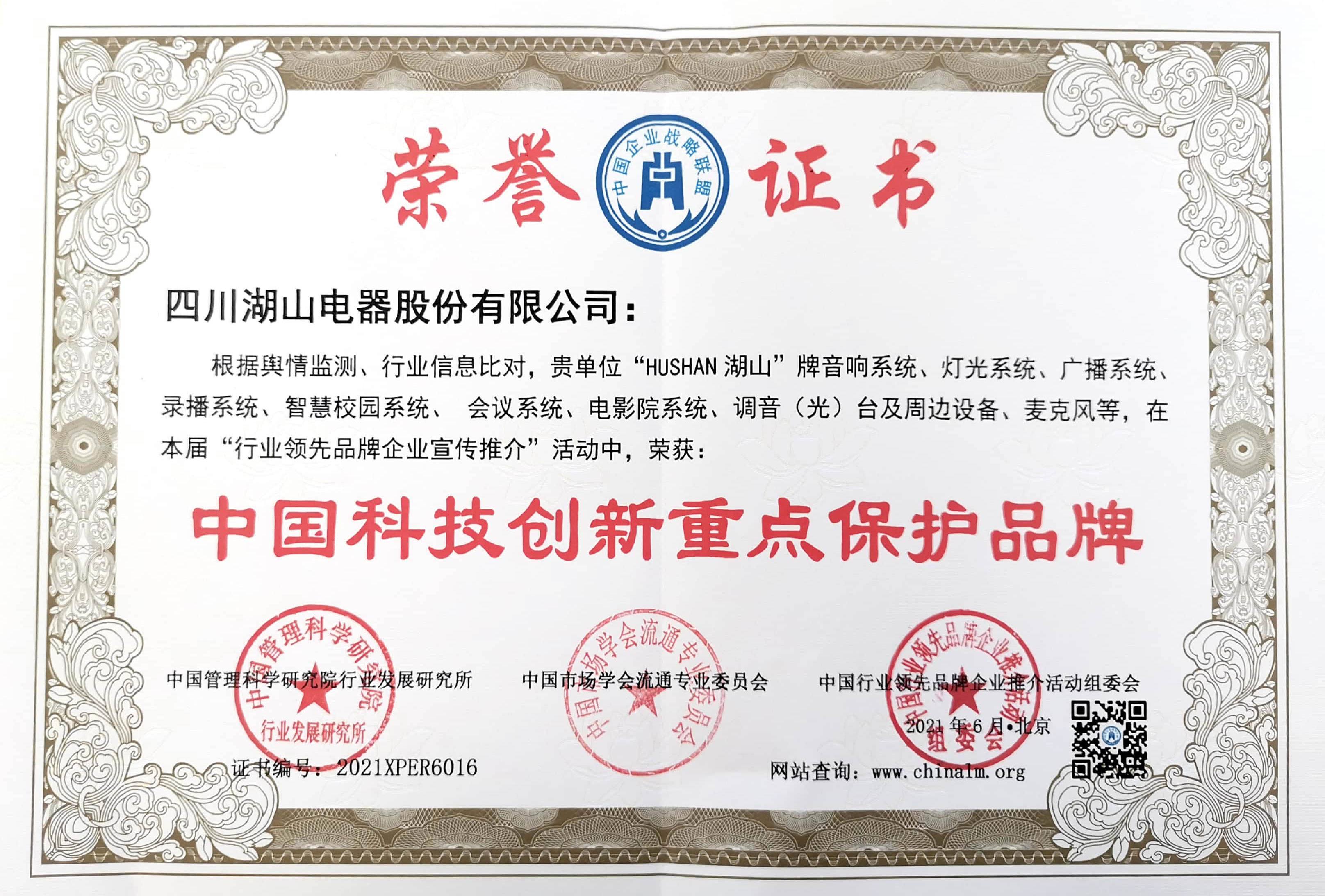 中国科技创新重点保护品牌